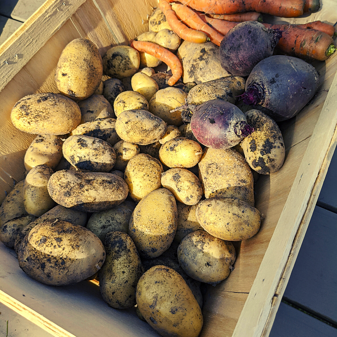 Et surtout, j’ai enfin récolté les pommes de terre. C’était la première fois que j’en faisais pousser, et je suis plutôt étonnée du résultat !